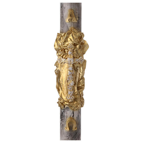 Osterkerze, Alpha und Omega, goldenes Tuch, Kreuz, grau marmoriert, 120x8 cm