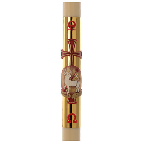 - Osterkerze Bienenwachs mit EINLAGE Agnus Dei goldenen Hintergrund 8x120cm
