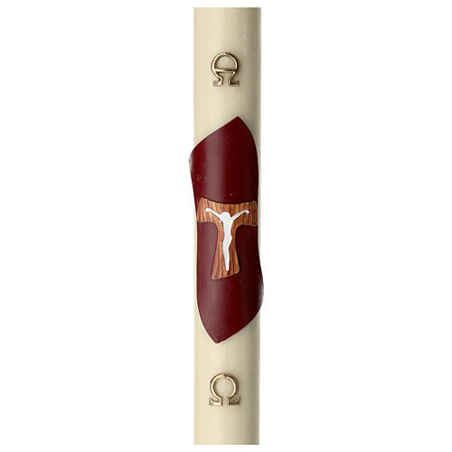 Diese Kerze ist aus Bienenwachs gefertigt und mit einem hölzernen Tau-Kreuz auf violettem Hintergrund und den Symbolen Alpha und Omega in Gold verziert. Die Kerze hält etwa 10 Tage. Hergestellt in Italien von den Handwerkern eines historischen Wachsfigurenkabinetts.