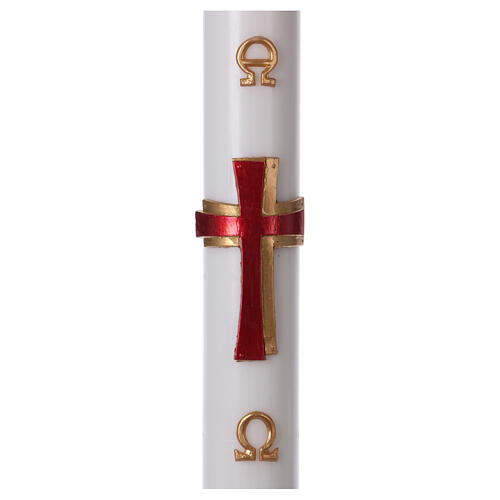 Osterkerze mit EINLAGE Reliefkreuz rot 8x120cm weisse Wachs