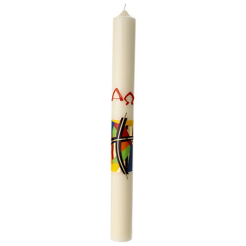 Osterkerze mit modernem Kreuz-Collage in Farbe 80x8 cm