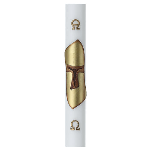 Osterkerze, weiß, Tau-Kreuz als Relief, Ø 8 cm × 120 cm