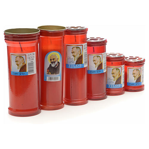 Die Kerze zeigt ein Bild von Pater Pio von Pietralcina, und ist verfügbar in verschiedenen Größen: