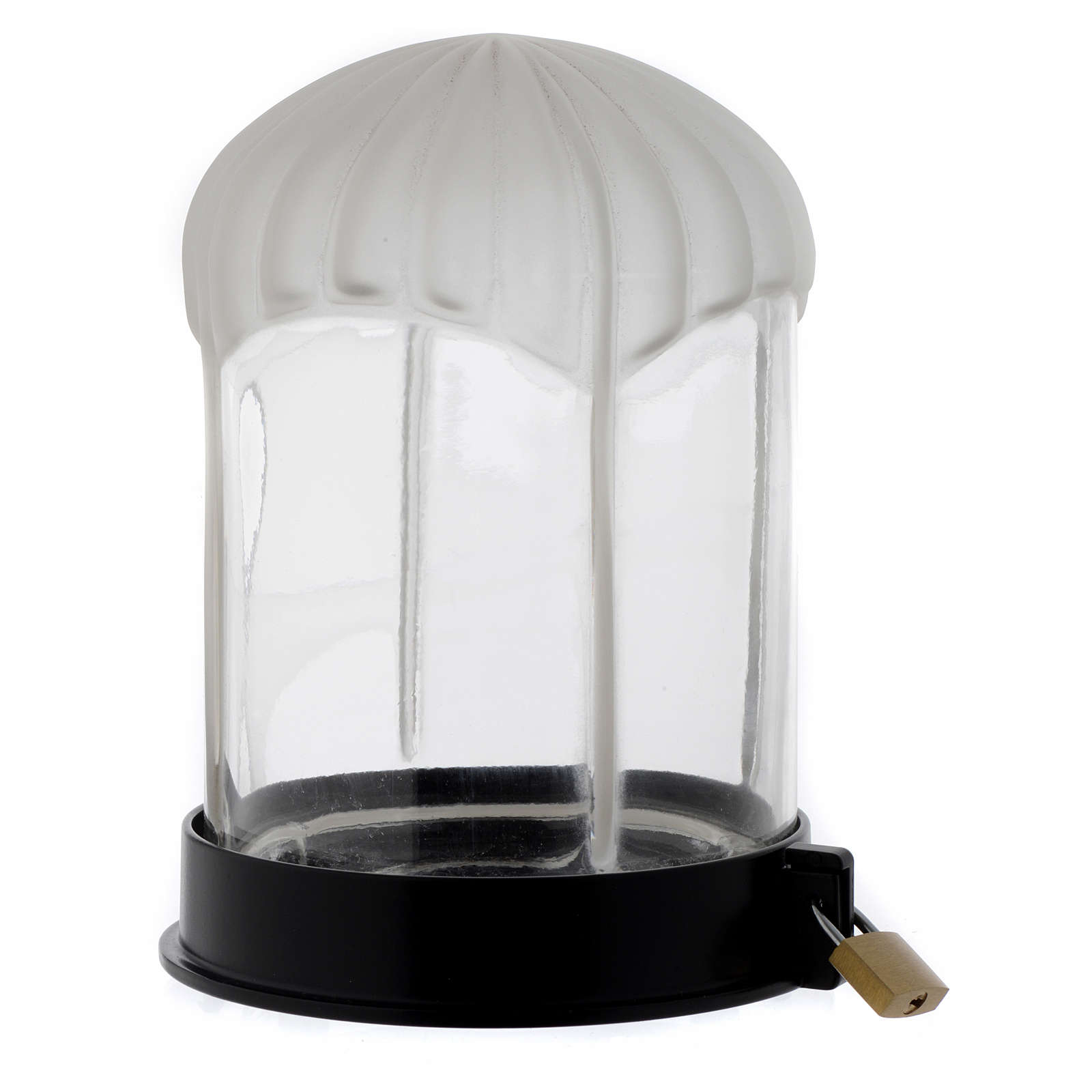 Grablaterne schwarz für Kerze, Lumada. Die Grablaterne hat eine Basis aus Metall, die fixiert sein kann. Der Deckel ist aus Glas realisiert.