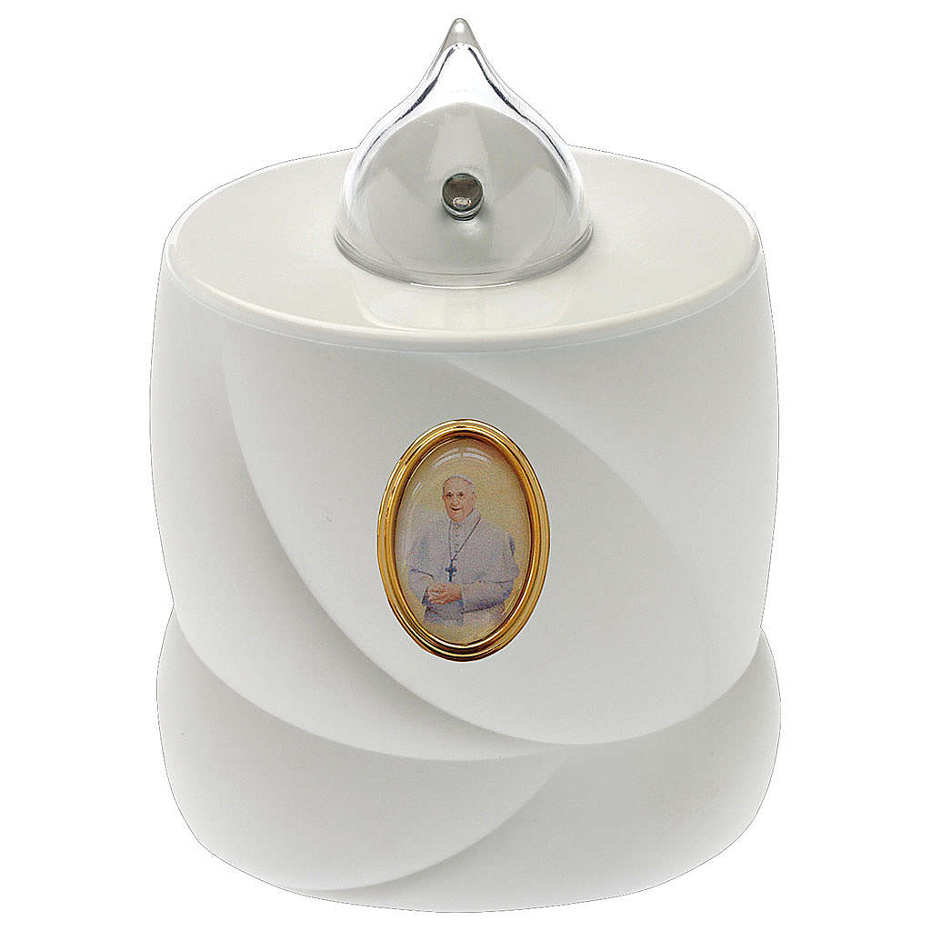 Grablicht Lumada weiß mit Bild Papst Franziskus roten Licht. Grablicht weiß mit Bild von Papst Franziskus und roten dauernden Licht.