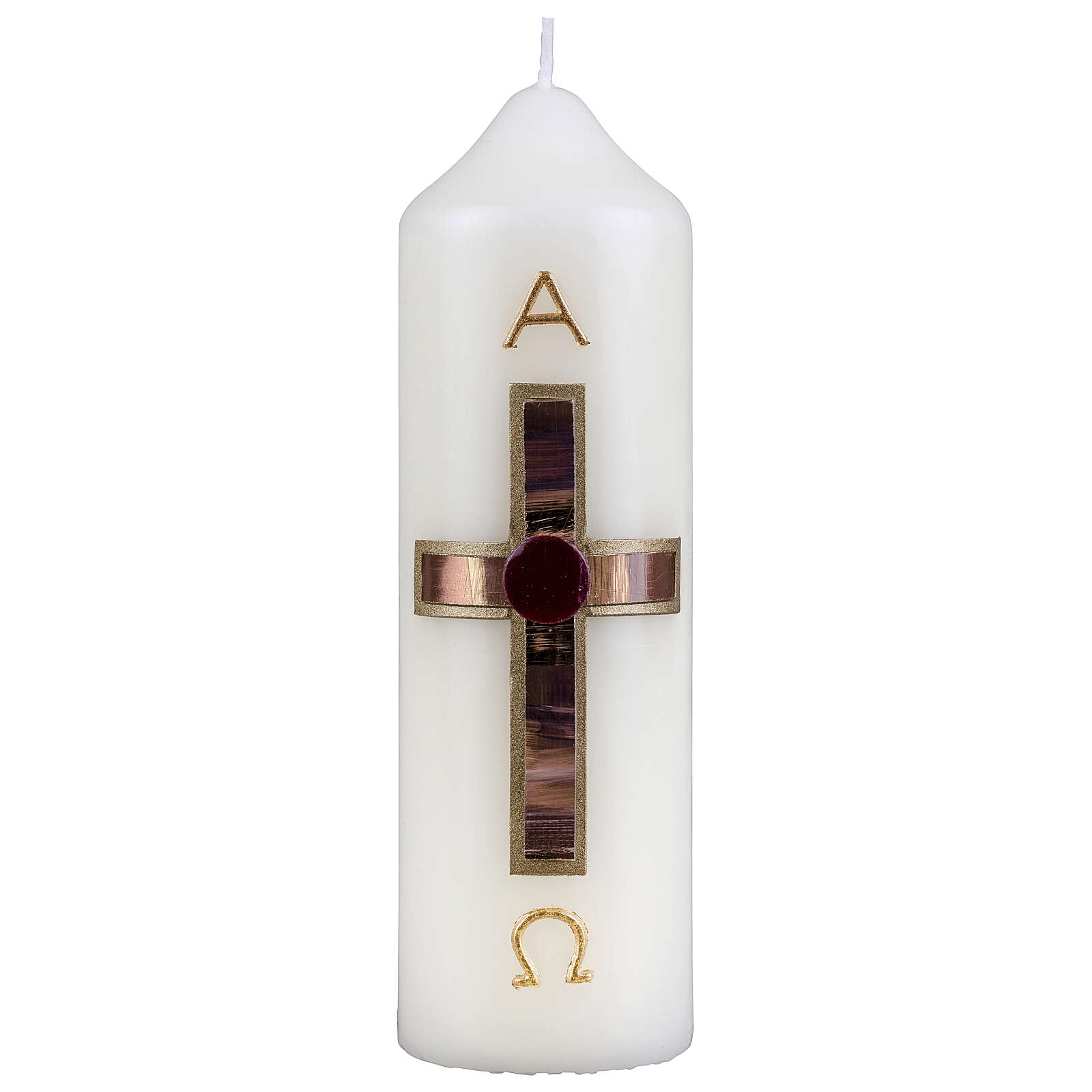 Kerze mit braun-goldenem Kreuz, 165x50 mm.