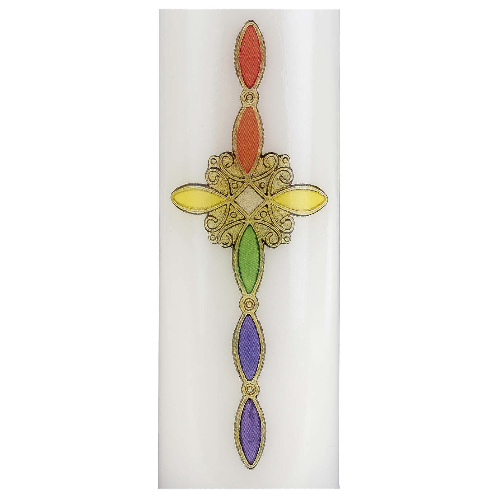 Kerze mit Kreuz und Regenbogenfarbenen Ornamenten, 165x50 mm