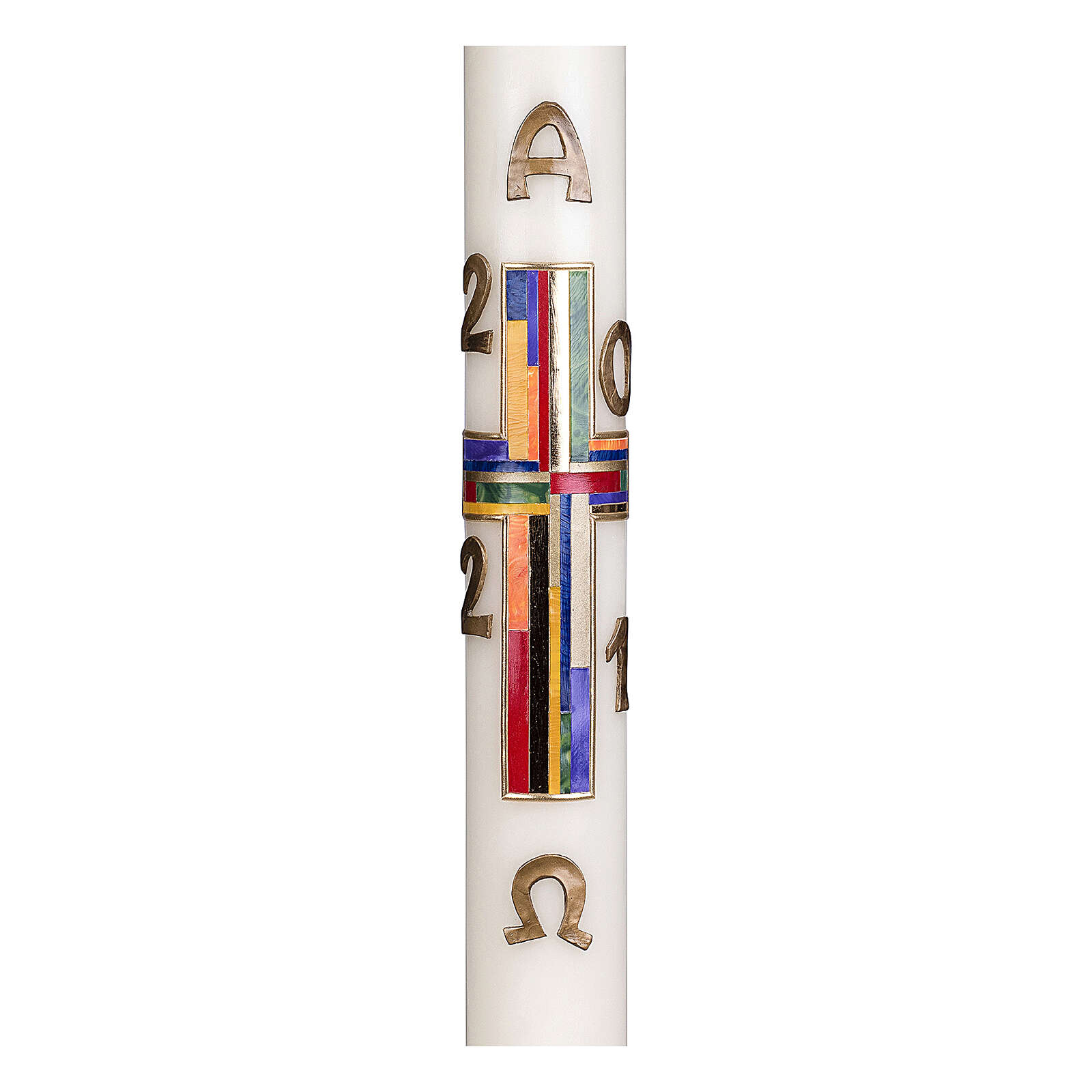 Osterkerze aus Bienenwachs buntes Kreuz, 80x8 cm.