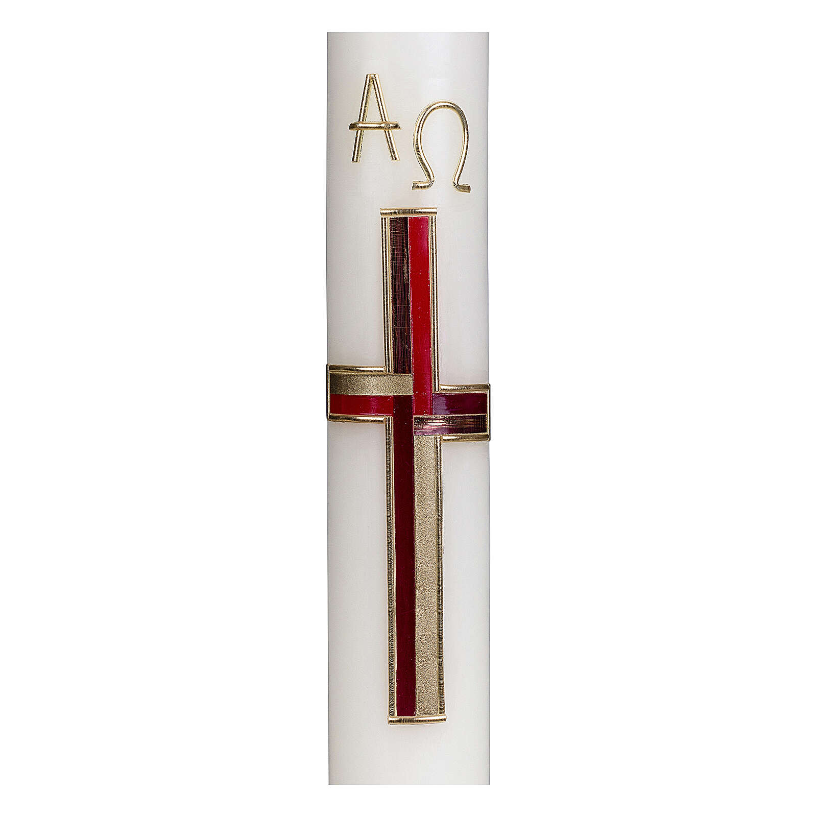 Osterkerze aus Bienenwachs mit rot-goldenem Kreuz, 400x60 mm
