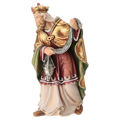 Krippenfigur, stehender König mit Gold-Gabe, Produktlinie "Mahlknecht Krippe", Material: Ahornholz, koloriert, hergestellt im Grödnertal, geeignet für eine 12 cm Krippe.