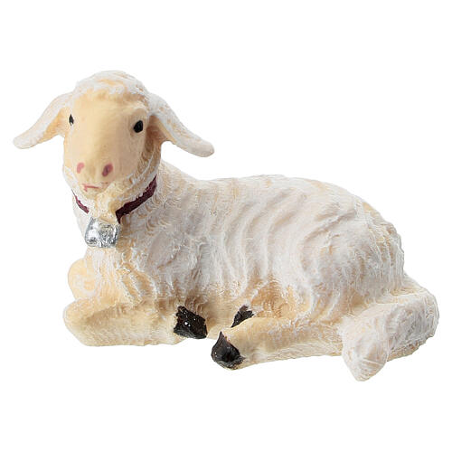 Liegendes Lamm bemalten Grödnertalholz für Krippe Kostner 9.5cm
