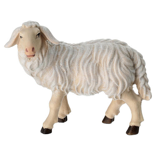 Krippentier, stehendes Schaf, nach links schauend, Produktlinie "Mahlknecht Krippe", Material: Ahornholz, koloriert, hergestellt im Grödnertal, geeignet für eine 12 cm Krippe.