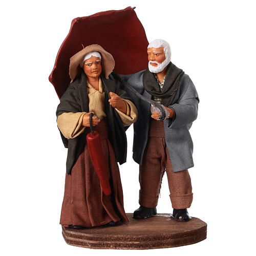 Älteres Paar mit Schirm, neapolitanischer Stil – für 10 cm Krippe
