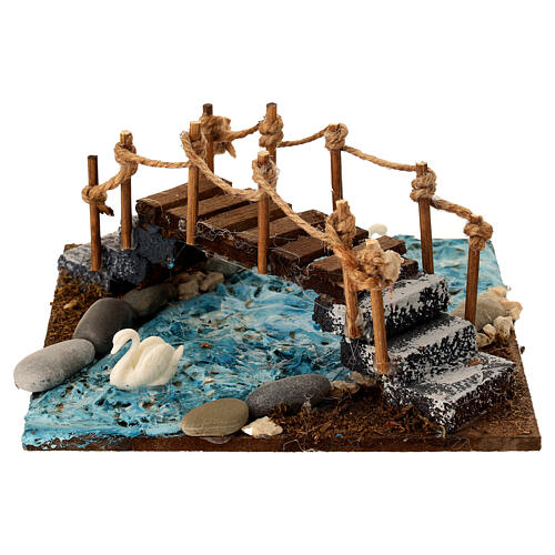 Brücke mit Schwänen, im neapolitanischen Stil, für 10–12 cm Krippe – Krippenzubehör