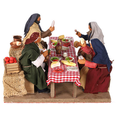 Familie beim Essen animiert 15x20x20 cm Neapolitanische Krippe, 12 cm