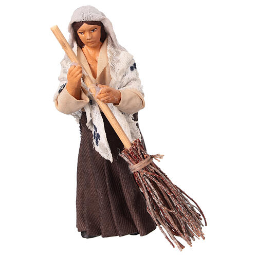 Frau beim Fegen, neapolitanischer Stil – für 10 cm Krippe