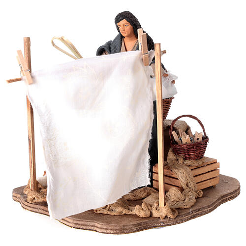 Frau hängt Wäsche auf für Krippe, 14 cm