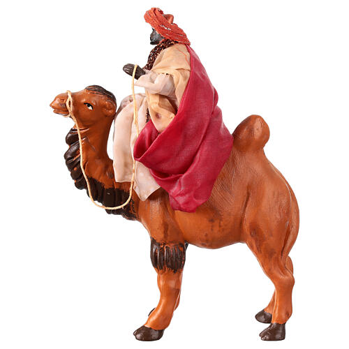 König mit dunklem Teint auf Kamel, Krippenfigur, Terrakotta, neapolitanische Krippe, für 15 cm Krippe