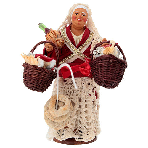 Diese Figur zeigt die Bella ’Mbriana, eine ältere Dame aus dem neapolitanischen Volksglauben, die als wohltätiger Geist des Hauses gilt. Ihr wird nachgesagt, dass sie dauerhaft in einem Heim wohnt, Schutz spendet und seinen Bewohnern Gesundheit sowie Wohlstand bringt.