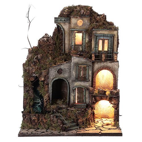 Neapolitanische Weihnachtskrippe mit Wasserfall und Treppen 50x40x30 für Figuren von 8-10 cm