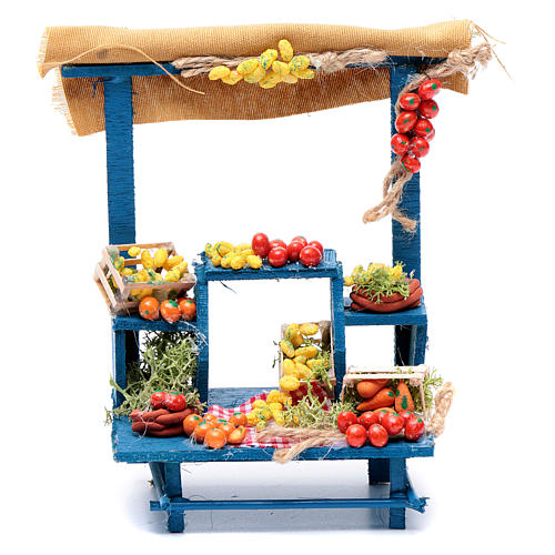 Obststand 15x14x9cm neapolitanische Krippe. Miniatur für Krippe realisiet aus Holz und Harz.
