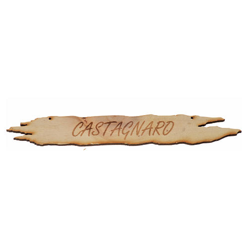 Schild Kastanienhändler für Krippe, 14 cm, aus laser-geschnitztem Holz.