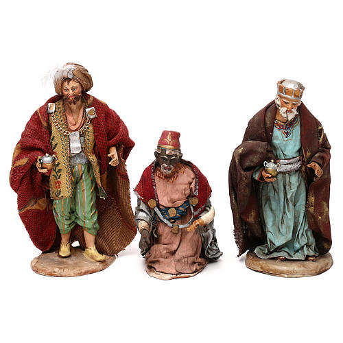 STOCK Drei heilige Könige 20cm neapolitanische Krippe. Set von 3 Krippenfiguren realisiert aus Terrakotta, Holz und Stoff und verfeinert mit vielen Details.