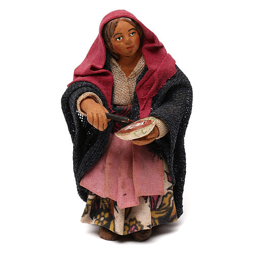 STOCK Sitzende Frau mit Pizza 10cm neapolitanische Krippe. Krippenfigur realisiert aus Terrakotta, Holz und Stoff und verfeinert mit vielen Details.