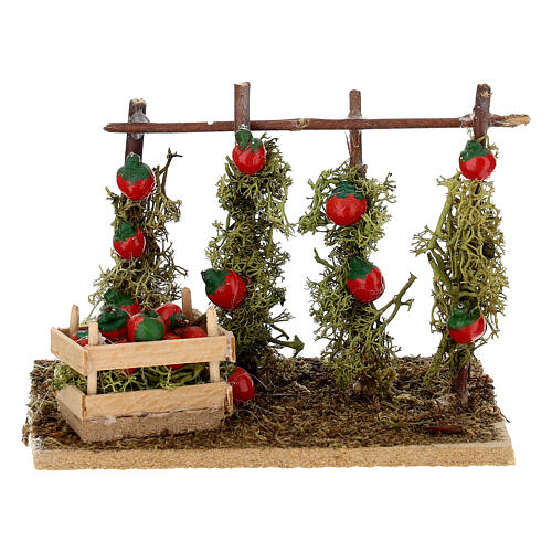 Szene mit Tomatenpflanzen, passend für eine neapolitanische Krippe mit einer 10–12 cm Figuren-Serie. Die detailreiche Gestaltung von Pflanzen und Boden macht dieses Gemüsebeet zu einem besonderen Blickfang und verleiht der Darstellung eine authentische, ländliche Note.