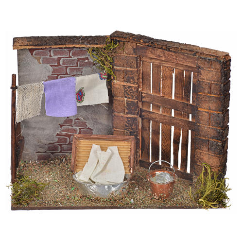 Szene Wäscherin neapolitanische Krippe, 10,5x15x8cm