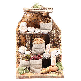 Eckverkaufsstand mit Käse und Wurstwaren, Krippenzubehör, neapolitanischer Stil, für 10 cm Krippe, 15x15x10 cm