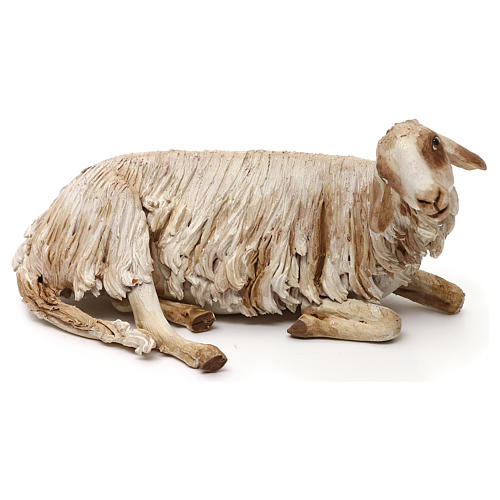 Schaf sitzend 30cm Krippe Angela Tripi. Tier für die Krippe realisiert aus Terrakotta und handbemalt bei der sizilianischer Künstlerin Angela Tripi.