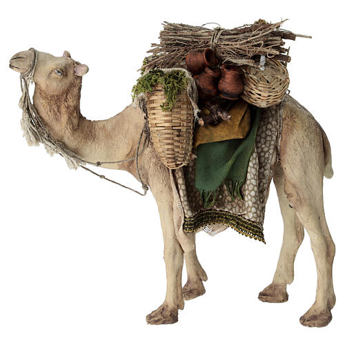 Stehendes Kamel mit Last, für 13 cm Krippe von Angela Tripi, Terrakotta