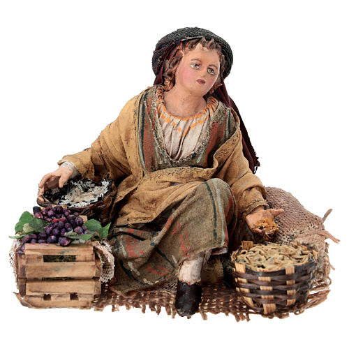 Trauben- und Getreideverkäuferin, für 13 cm Krippe von Angela Tripi, Terrakotta