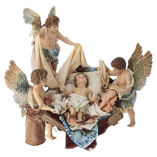 Wiege mit drei Engelchen, für 30 cm Krippe von Angela Tripi, Terrakotta