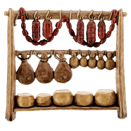 STOCK, Verkaufsstand mit Wurst- und Käsespezialitäten – für 6-cm-Krippe, Moranduzzo, Resin
