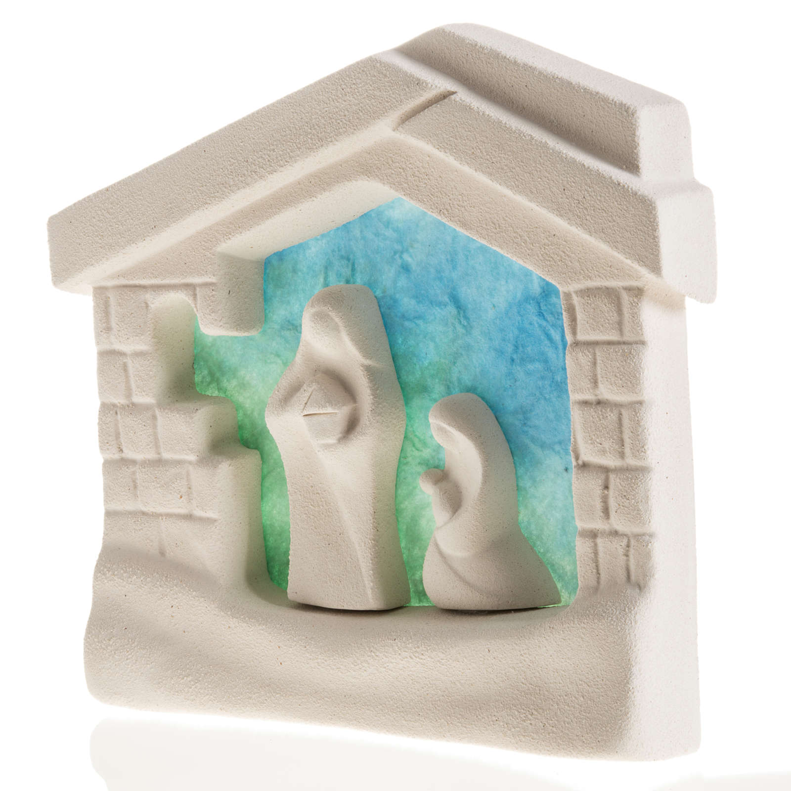 Häuschen Weihnachten für Wand mit Geburt aus Ton hellblau
