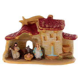 Hütte mit Krippenszene Jesus Geburt aus Terrakotta in weiß, 10 cm