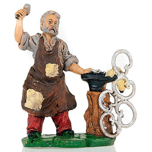 Schmied fuer Krippe dass arbeitet. Kleine Statue aus Harz für Krippe von 13 Zentimeter. Sie wird mit schadstofffreien Materialen in Italien produziert.