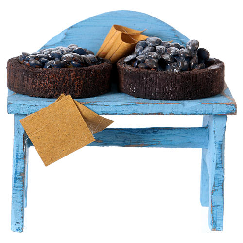 Stand mit Venusmuscheln für Krippenfiguren von 10cm. Miniatur für die Krippe realisiert aus Holz und Terrakotta.
