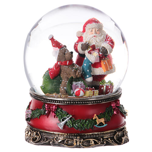 Schneekugel mit Spieluhr, Weihnachtsmann mit Teddybär – H 20 cm, Ø 15 cm