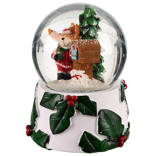 Schneekugel, Rentier am Briefkasten – H 15 cm, Ø 11,5 cm