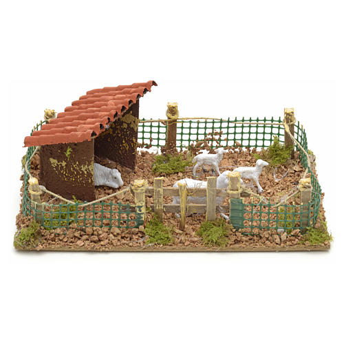 Gehege mit Schafen für Krippe, Dimensionen 20x12 cm.