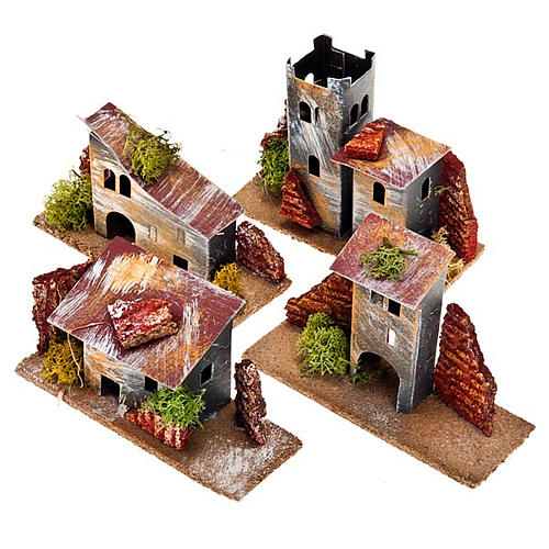 Kleine Haus aus bemalten Karton mit Basis aus Holz für Krippe. Man kann zwischen verschiedenen Typen waehlen(schauen Sie im Fotos); die Preise ist das Gleich.