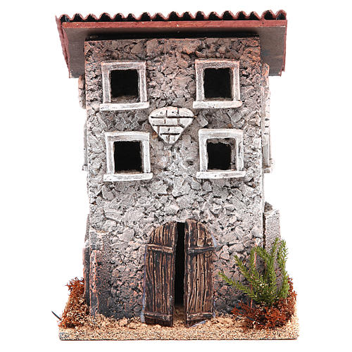 Haus mit Holztor aus Kork für Krippe 23x16x10cm