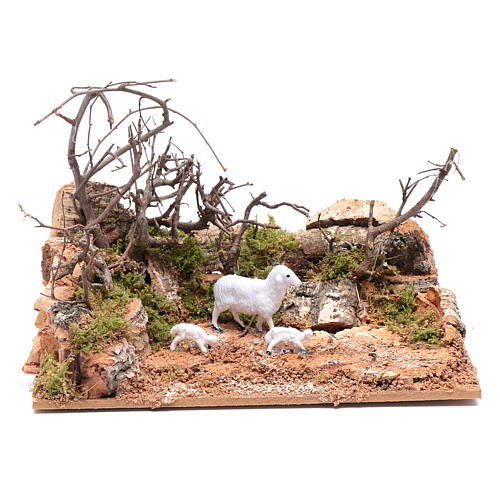 Krippenszenerie, Landschaft mit Schafen, Maße: 13x20,5x14 cm.