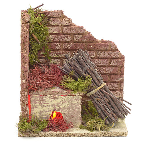 Ofen fuer Ihre Krippe, aus Holz und mit Batterien.