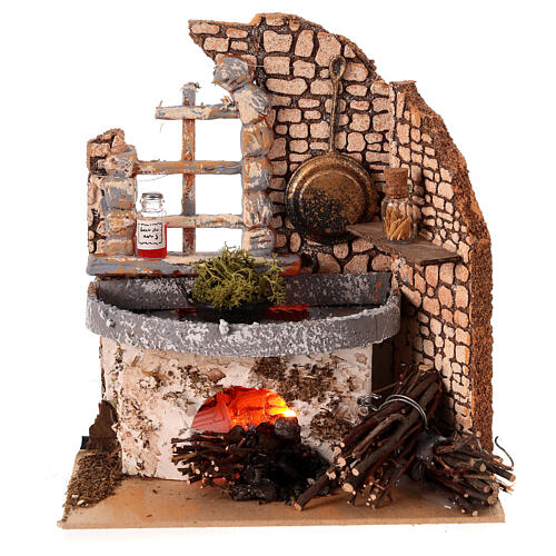 Der Ofen ist mit einer integrierten LED-Beleuchtung ausgestattet, die durch ihren flackernden Effekt den Feuerschein realistisch nachahmt. So entsteht eine warme und einladende Atmosphäre innerhalb der Krippenszene.