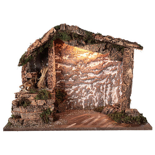 Holzhütte mit Kork Weihnachtsgeschichte für Krippe, 40x50x25 cm.