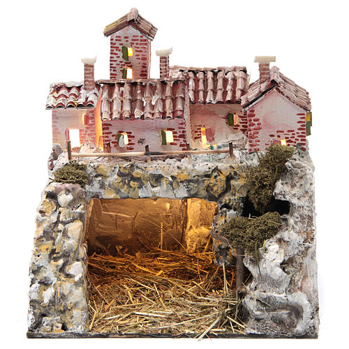 Krippenszenerie, felsige Landschaft, Maße: 25x25x20 cm, mit 10 batteriebetriebenen Lichtern, geeignet für 8 cm Figuren.